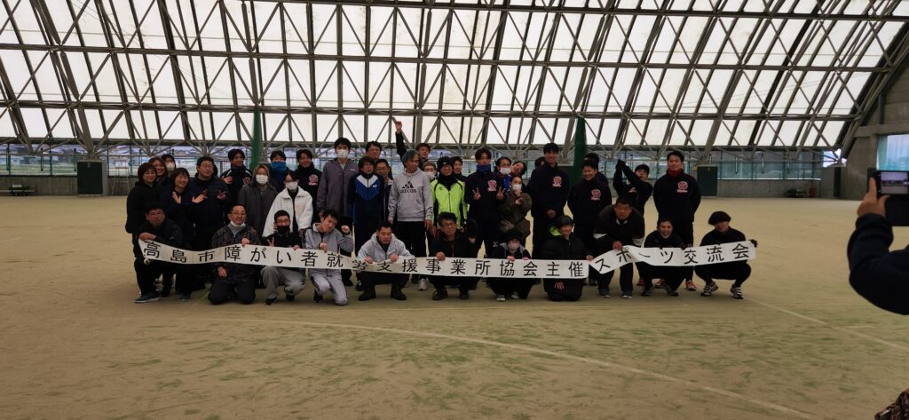 このスポーツ交流会は、事業所に就労・通所されている障がいある方や一緒に働いておられる社員の