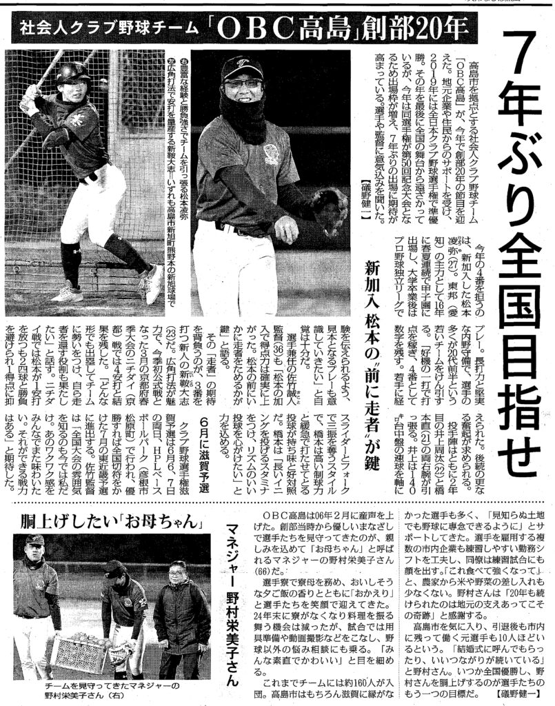 毎日新聞の朝刊滋賀版にOBC高島の記事が掲載されました。