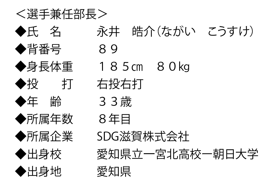 ●選手兼任部長 永井 皓介(Nagai Kosuke)